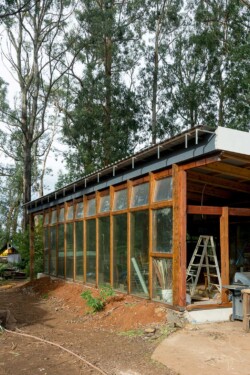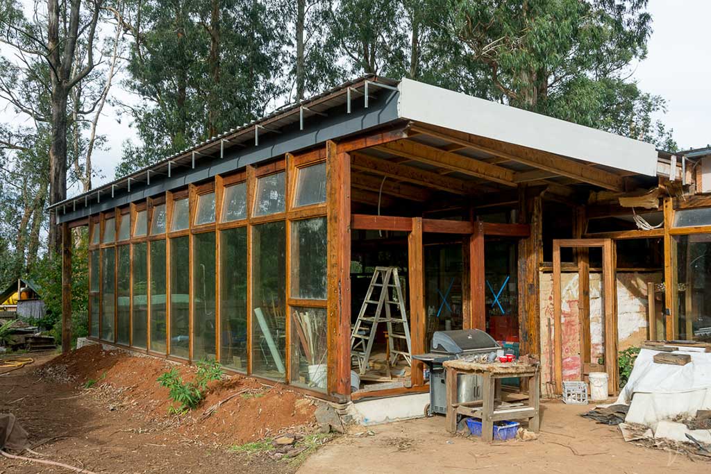 Our ‘mudship’ rebuild is part ‘biotecture’ retrofit of our original home and part construction of a two bedroom Global Model Earthship-inspired new dwelling.