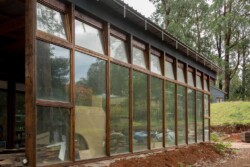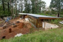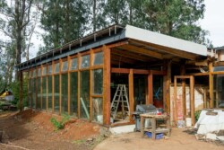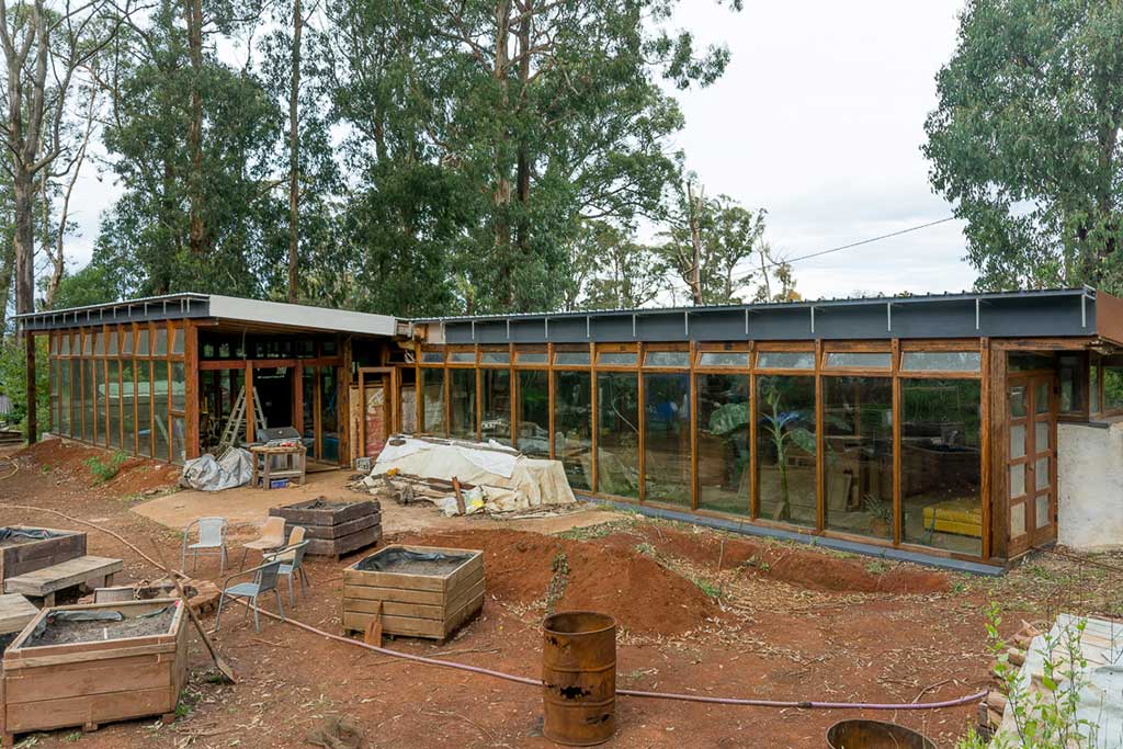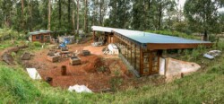 When complete, it will be off grid for electricity (solar, wind, geothermal), process all grey and black waste, collect and store rainwater, grow food (inside and out) and be fire and flood resistant.