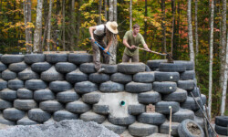 The key idea behind earthships is to use abundant materials that would otherwise be discarded — namely scrap tires. In building earthships, tires are used like bricks; Hatch’s project calls for about 700 of them, and the walls of the home will eventually reach 13 tires high.