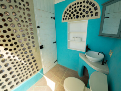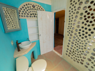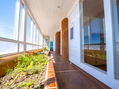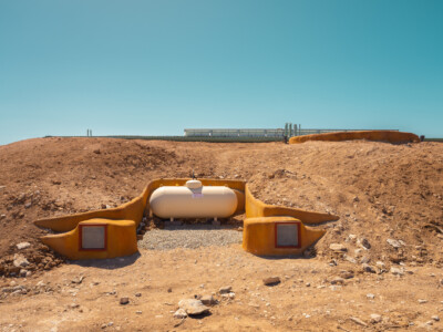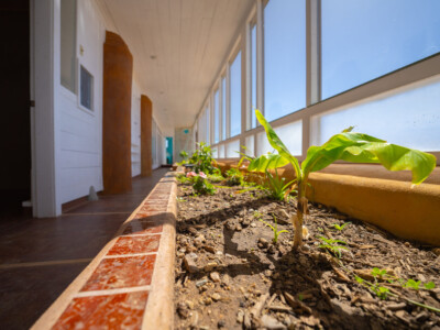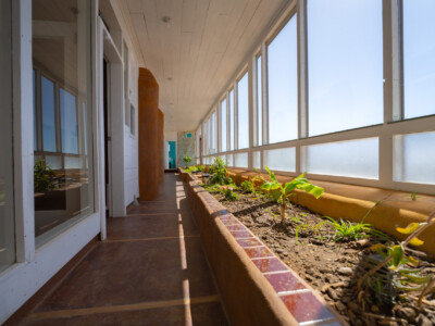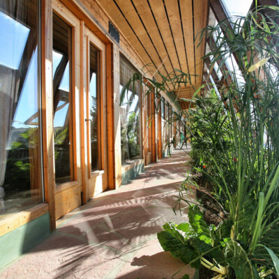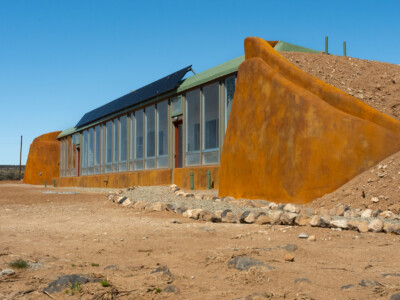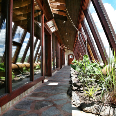 The Global Earthship design performs in almost any climate around the world. The main features of this design include a double layer of glass (“double greenhouse”) between the inner living spaces and the outside and the use of underground cooling tubes and convection skylights which work together to provide ventilation and natural air conditioning for the building.