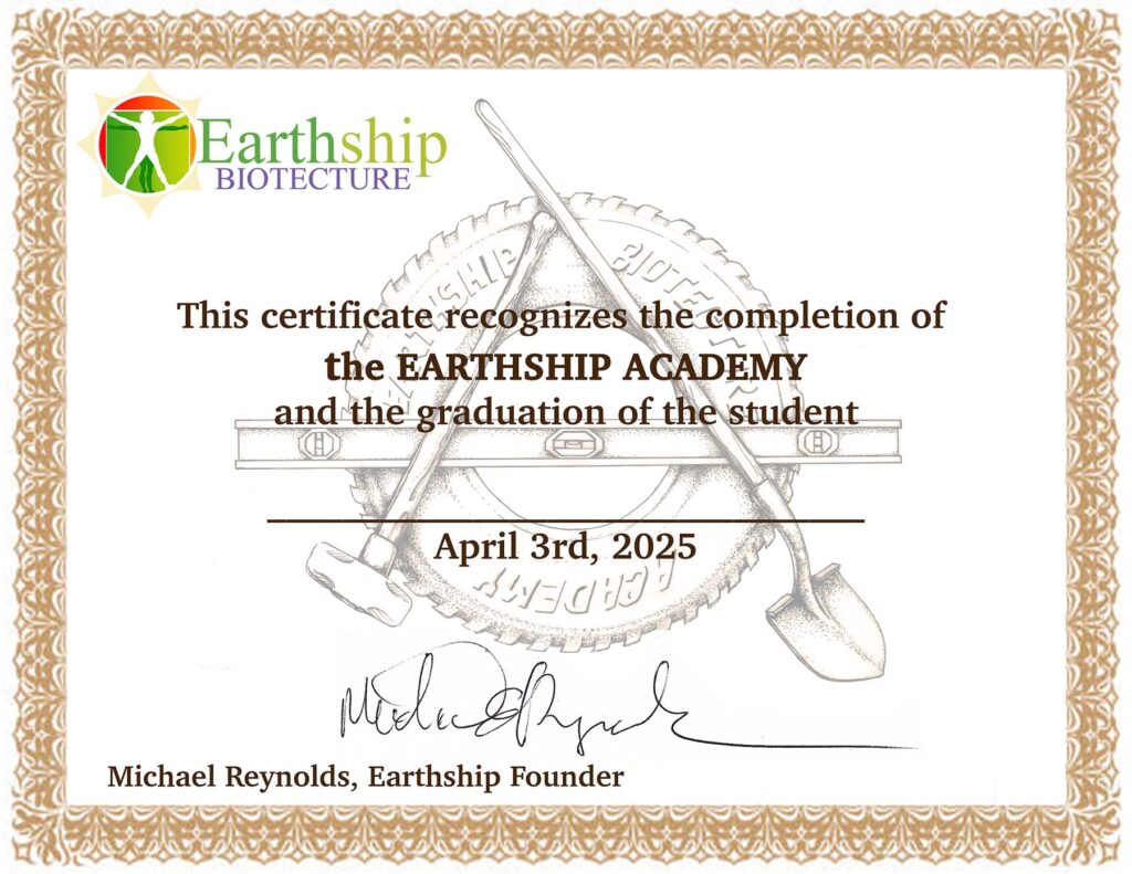 You will then have to complete an Independent Study to graduate, just like the Earthship Academy students attending the Earthship Academy at the Earthship Campus Headquarters